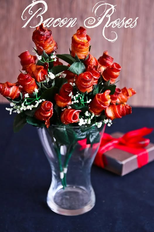 6. Remove the bacon roses from the oven and cool completely. Remove the toothpicks.